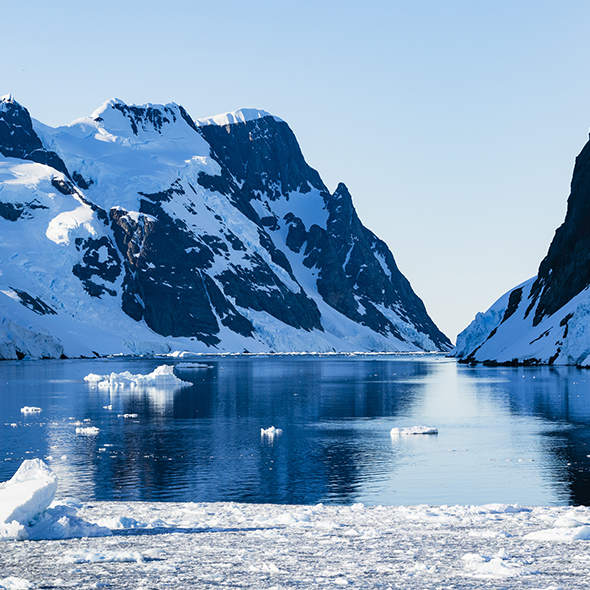 Lemaire Channel is known as the most famous and visually beautiful place along the peninsula. Cruise through this narrow channel between towering snow-covered mountains and spectacular blue icebergs. Enormous sheer cliffs drop straight into the sea.