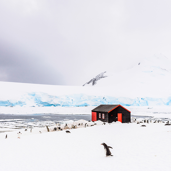 Port Lockroy is a beautiful natural harbor on Goudier Island on the Palmer archipelago, reached by passing through the towering grandiose cliffs of the Neumayer Channel. The great French explorer Jean-Baptiste Charcot named Port Lockroy a century ago. This is home to Antarctica's only public post office, so make sure to bring a postcard to send mail to be postmarked in Antarctica.
