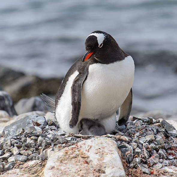 King George Island is one of the largest of the South Shetland Islands and is about 75 miles off the coast of Antarctica. It is home to elephant, Weddell and leopard seals, and Adelie, chinstrap and gentoo penguins. There are several other seabirds, including skuas and southern giant petrel, which nest on this island during the summer months.