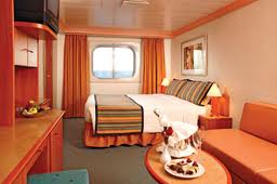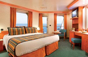 - Two twins that convert to queen-size - large panoramic windows with glass doors - private veranda - closet space - private bath with whirlpool tub and shower - expanded seating area - desk - sofa bed - vanity - television - phone - hairdryer - mini bar - safe Cabin size includes balcony