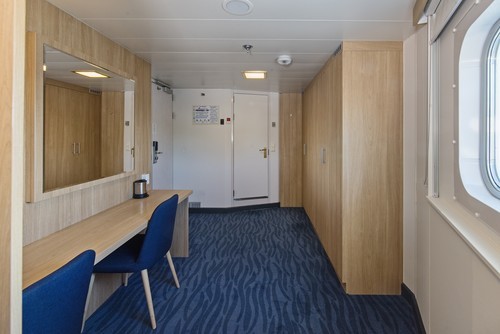 These standard outside cabins for up to two people on the middle decks have separate beds, one of which converts into a sofa, and bathrooms with shower/WC.