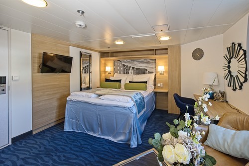 These comfortable suites for up to two people on the upper deck have double beds, and most have sofa groups as well. The suites also have a TV, Wi-Fi, and great view.