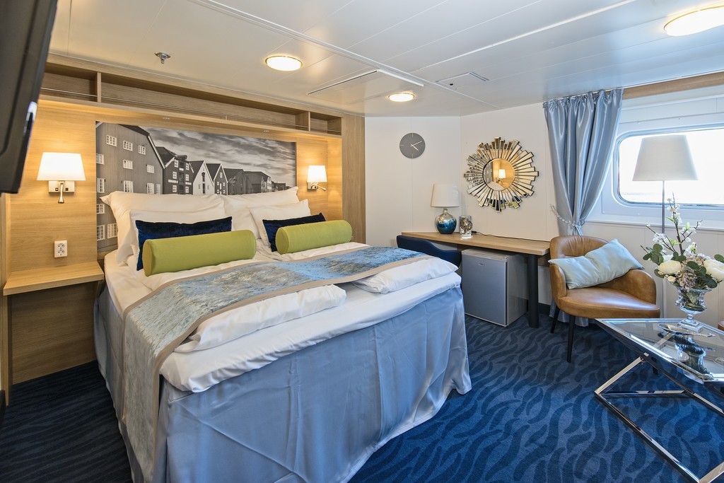 Relaxation and comfort are the hallmarks of our Arctic superior cabins. Situated on both the upper and middle decks, the cabins all have bathrooms with shower and WC. They are also equipped with tea and coffee-making facilities and TV. Most have double beds, and some have bunk beds. All the cabins have individual specifications.(Note: All Arctic superior cabins on deck 5 have the promenade deck outside.)